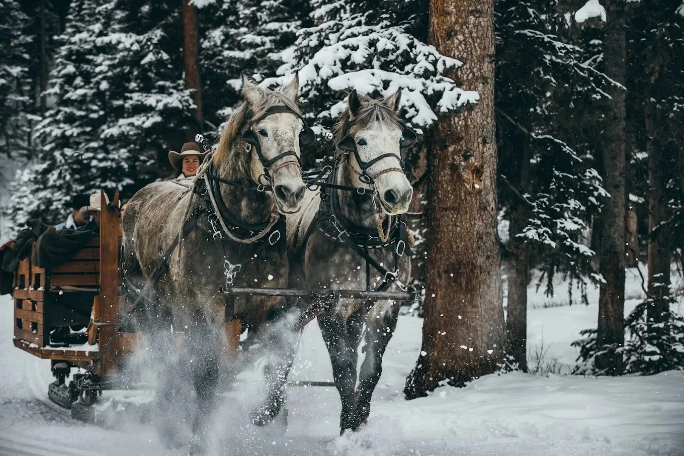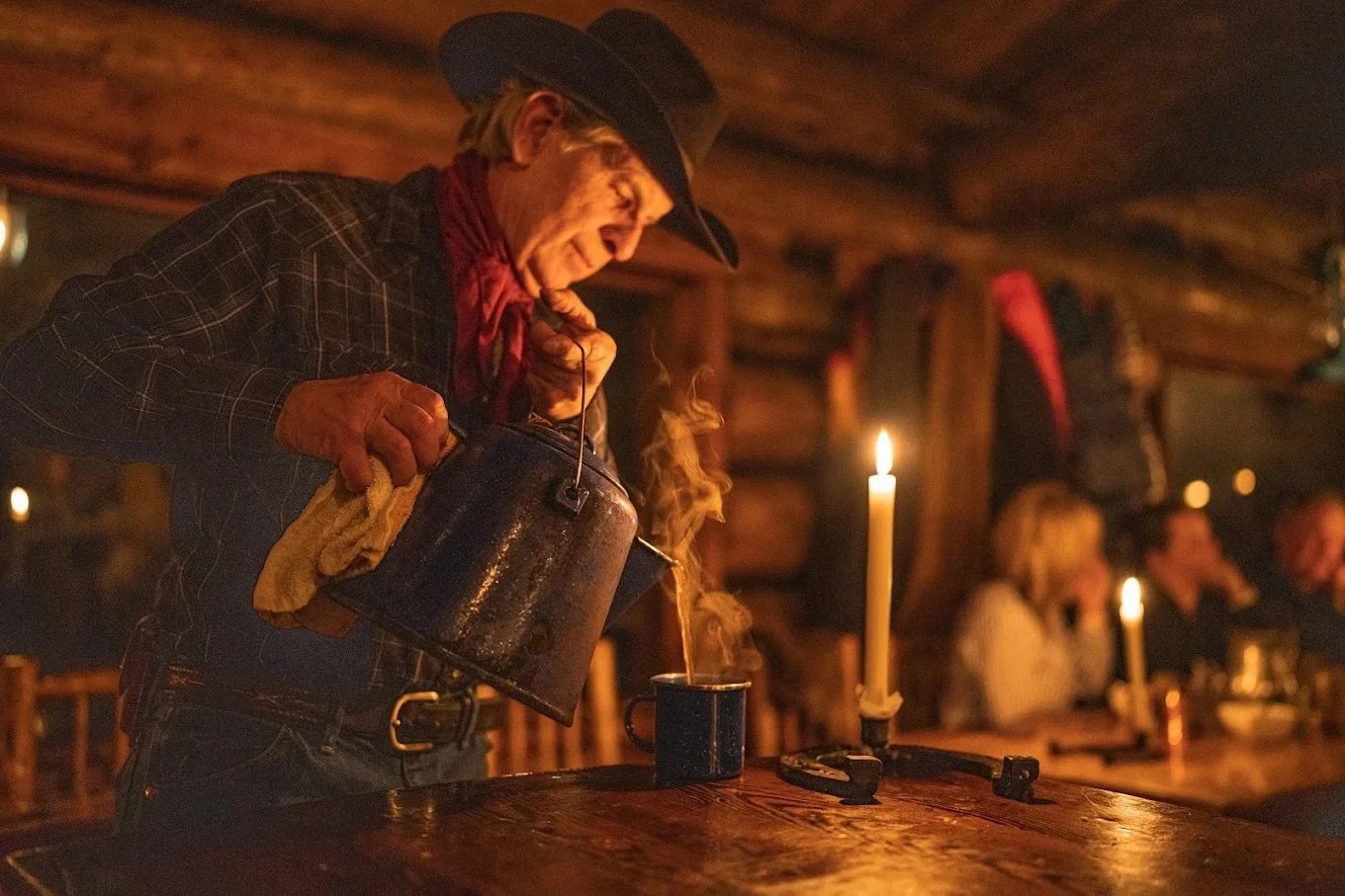 End your evening with a breathtaking winter sleigh ride to a cozy cabin for a delicious prime rib dinner as you enjoy songs and stories from a cowboy entertainer.